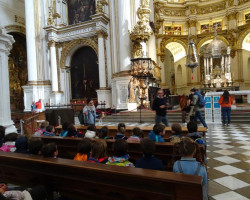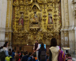 Han quedado admirados por la altura de las columnas, las vidrieras, esculturas, pinturas, los órganos, etc. etc. incluso el policía local que hay en la entrada del Ayuntamiento se ha ofrecido amablemente a pasar sus mochilas por la máquina que detecta lo que hay dentro.