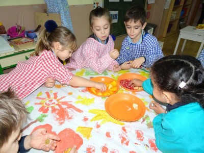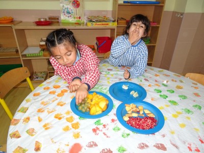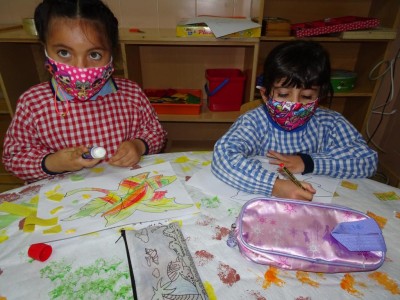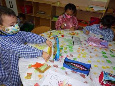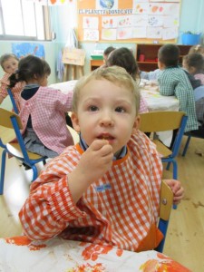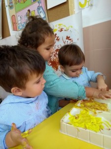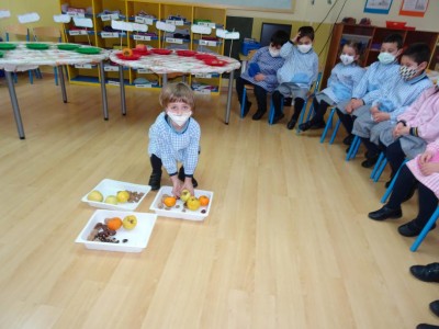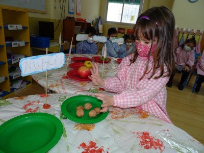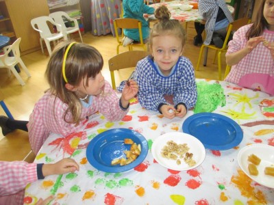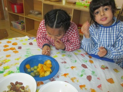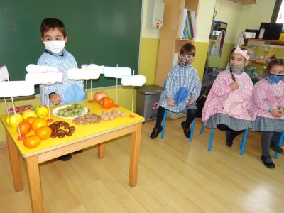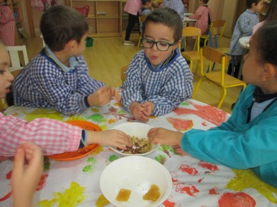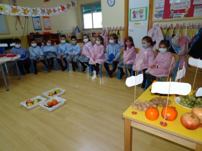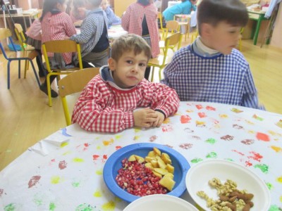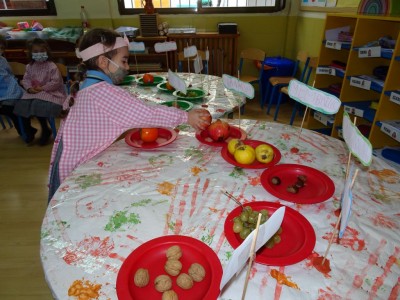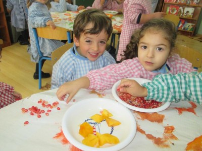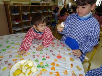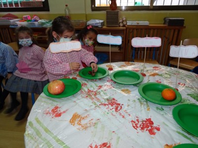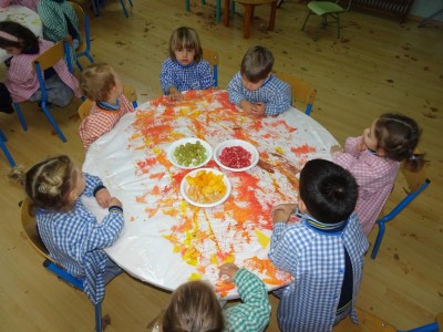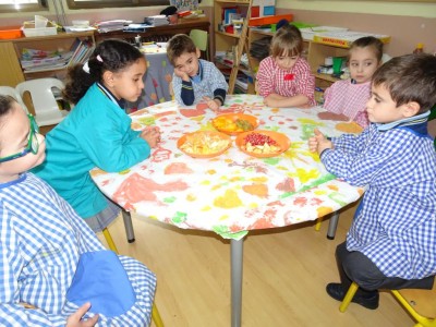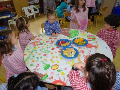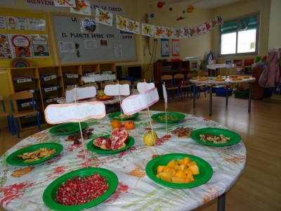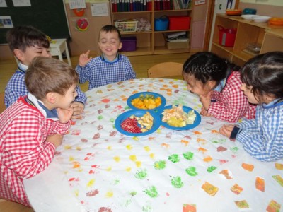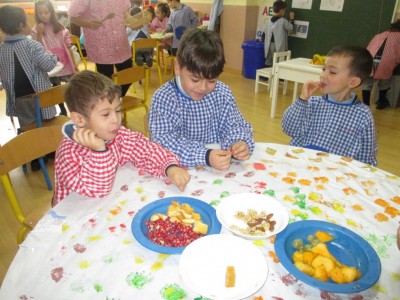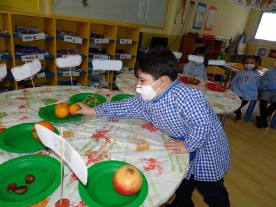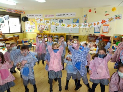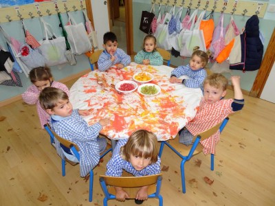 Hasta entonces y sin bajar la guardia ni un solo momento, seguimos proporcionando a los pequeños actividades y experiencias que los hagan crecer en todos los sentidos. Hemos tenido durante estos últimos días talleres de cocina, pintura y degustación de frutos de otoño. Los más pequeños han elaborado magdalenas y un bizcocho, y los más grandes han disfrutado decorando las clases para la fiesta de otoño en la que pudieron probar frutos típicos de esta estación: uvas, mandarinas, caquis, nueces, almendras, dulce de membrillo, bellotas, etc. A juzgar por sus caras, disfrutaron con todos los sabores probados.