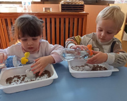Nuestros alumnos más pequeños tuvieron experiencias con agua en estado líquido y sólido.