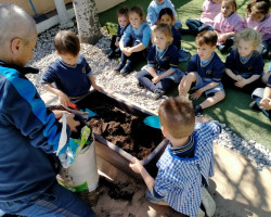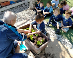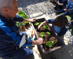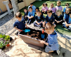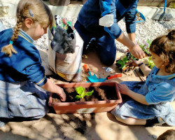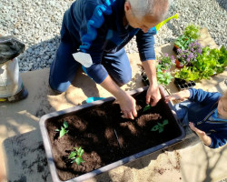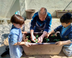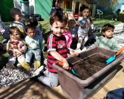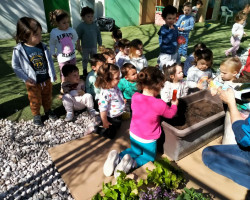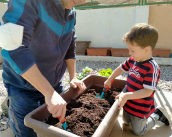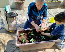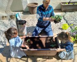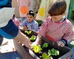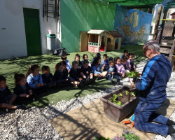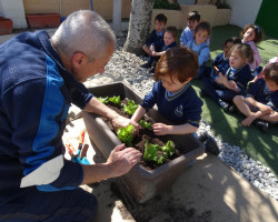 Aprovechamos esta ocasión para recibir la primavera, sembrando en nuestro huerto plantas de lechugas, pimientos y flores, que cuidaremos hasta que veamos brotar sus frutos, y lentejas en vasos, que también brotarán con sus cuidados.