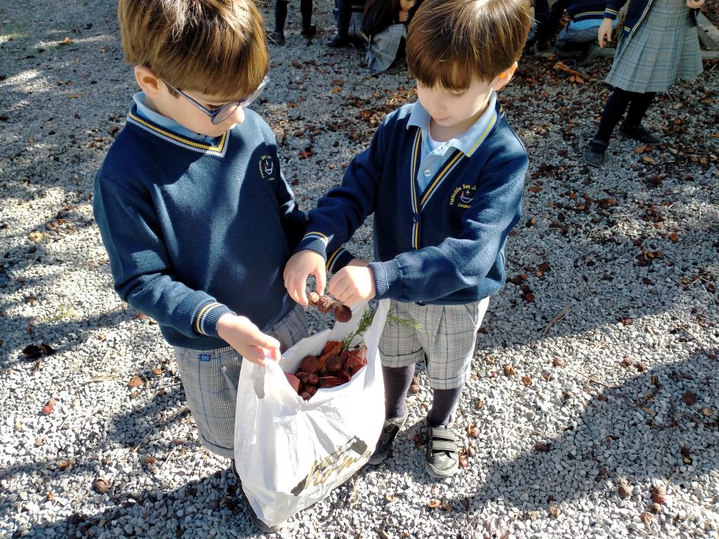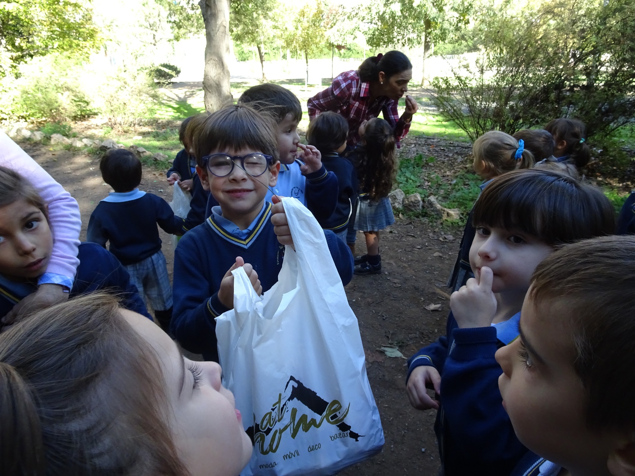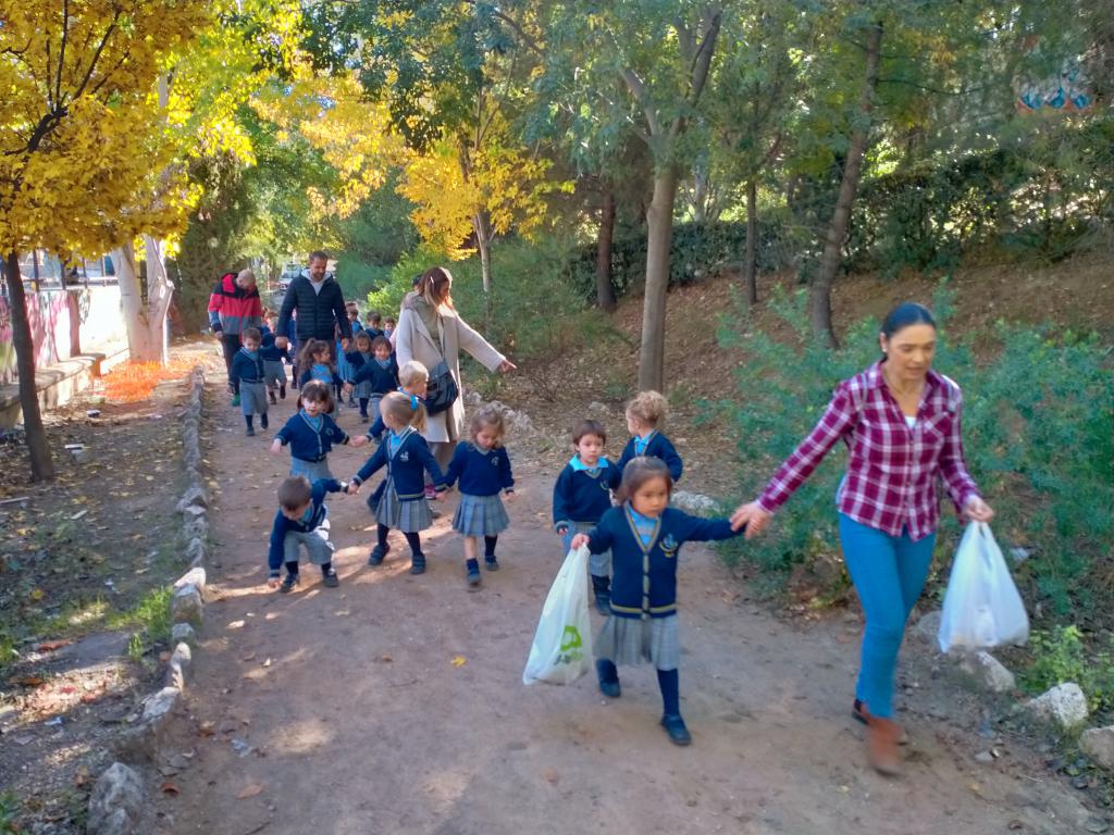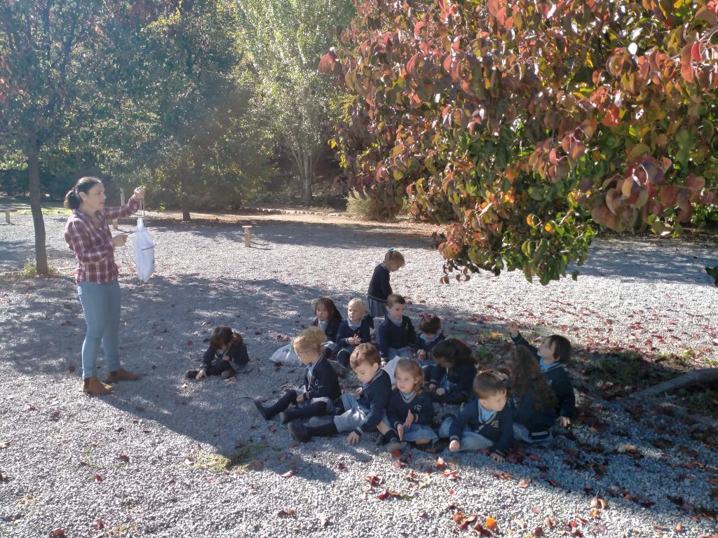 Estamos viviendo un otoño algo peculiar, con temperaturas más cálidas de lo que deberían ser, pero nuestro entorno está dando muestras de que esta estación ha llegado. Hemos salido estos días para ver cómo van cambiando los árboles, las plantas y ya que el parque Bola de Oro tiene gran cantidad de vegetación, ver qué árboles son de hoja caduca y de hoja perenne. Durante estos días hemos profundizado en los motivos de que se dé esta circunstancia con investigaciones en casa, en el aula e in situ.