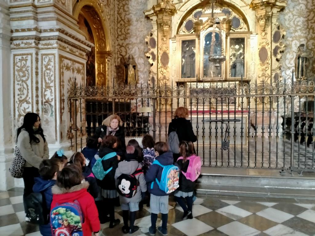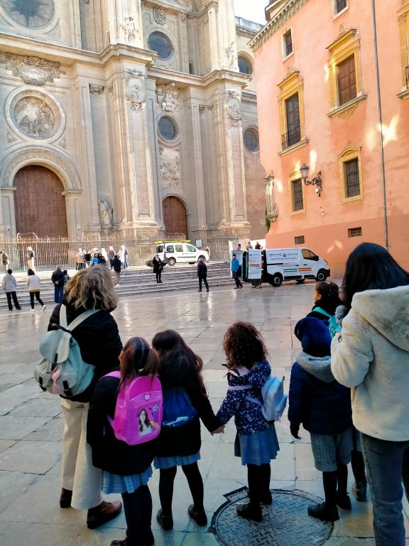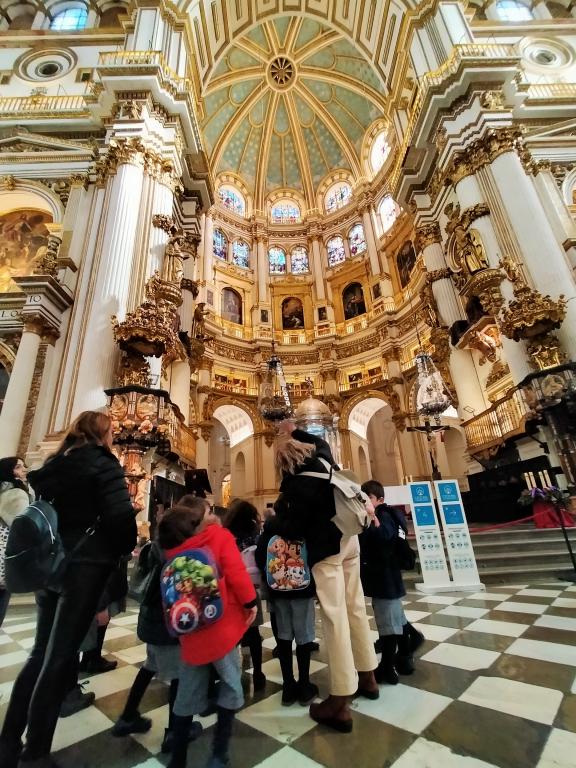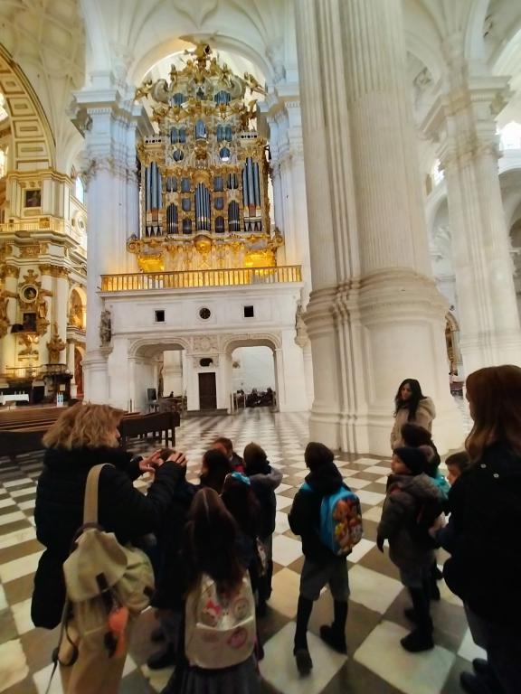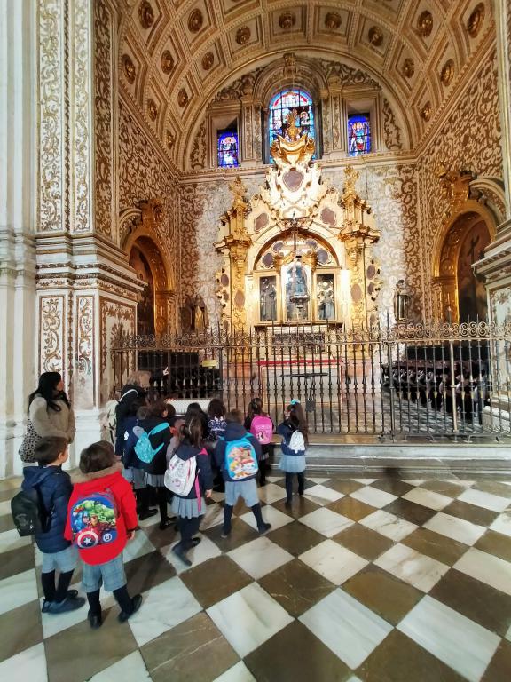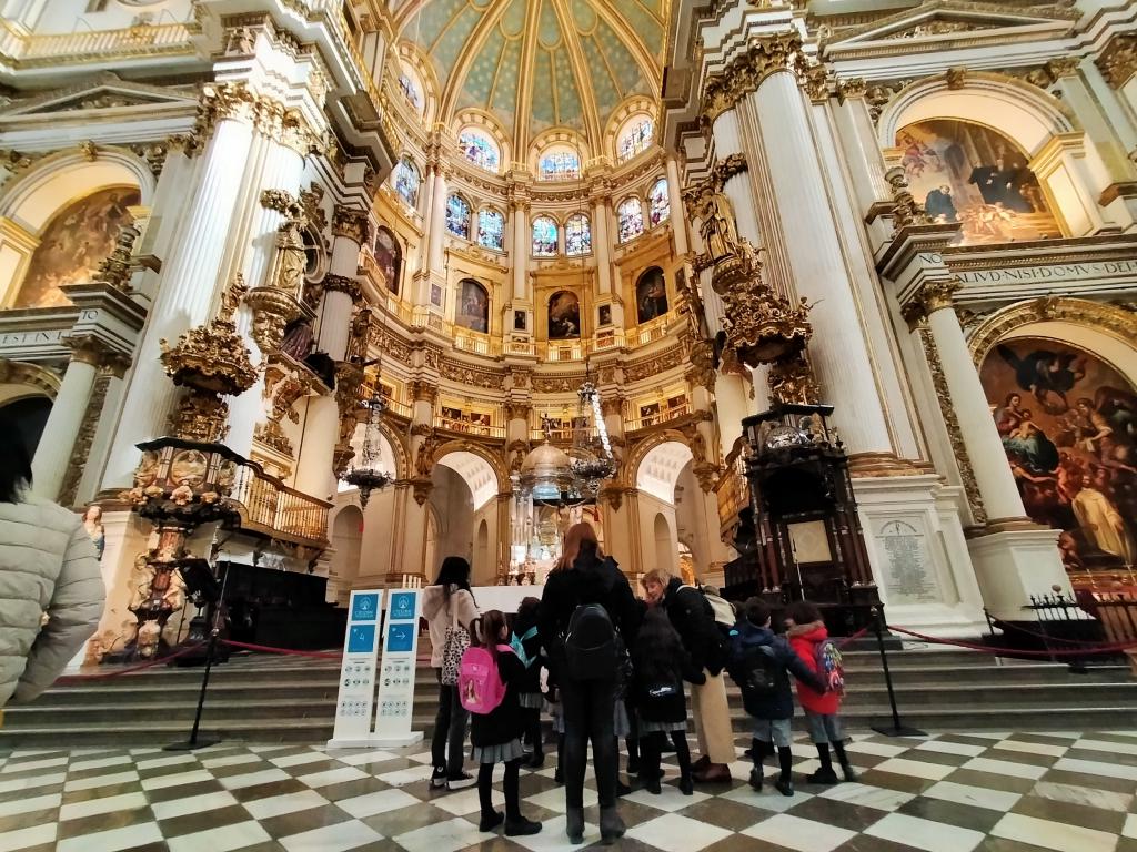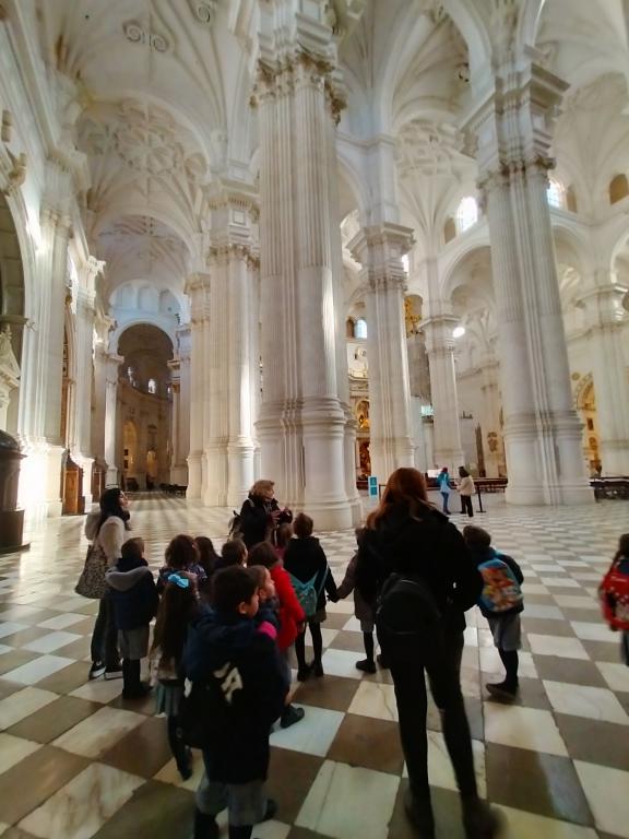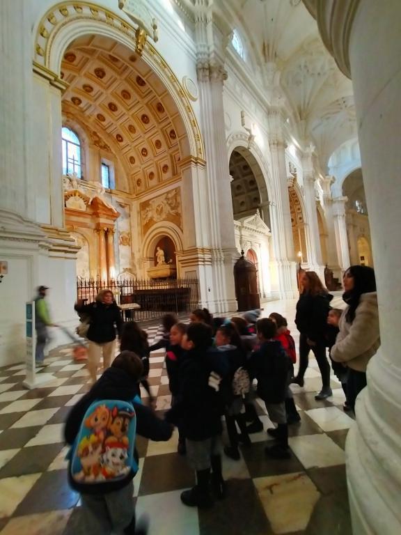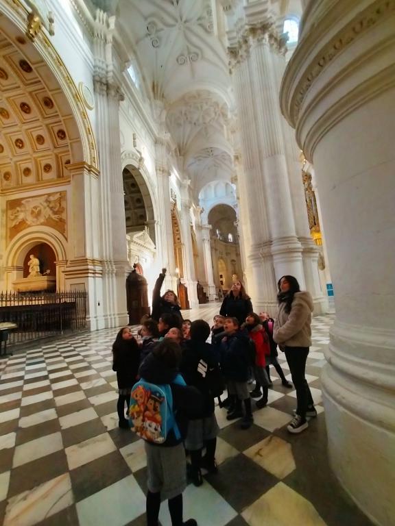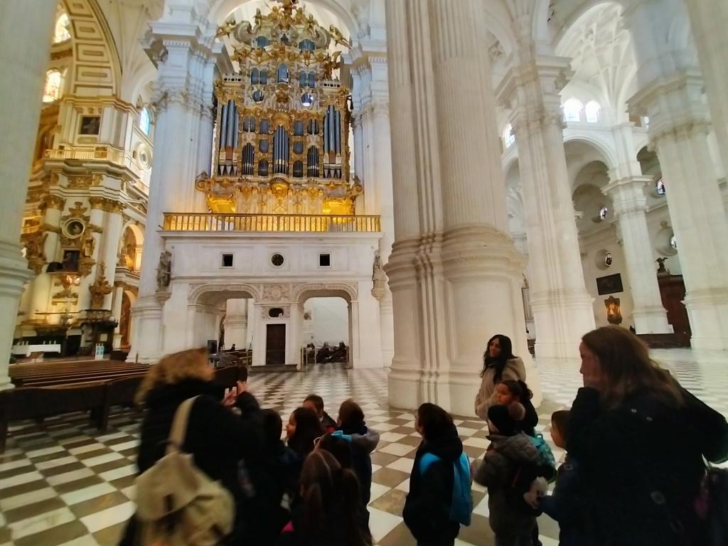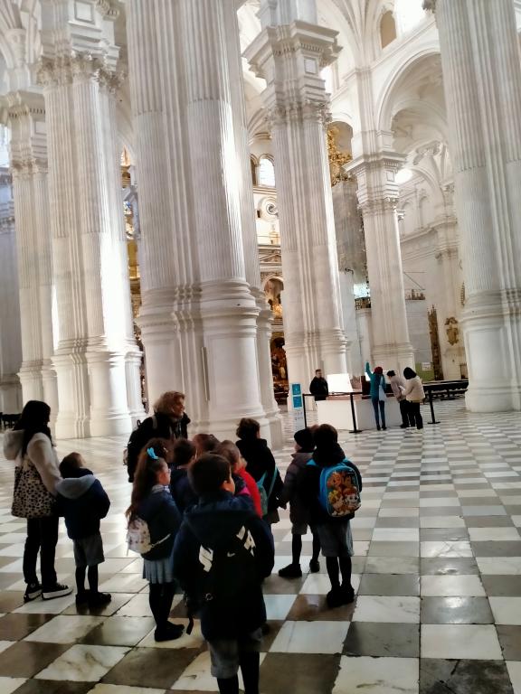 Fuimos buscando todo aquello que habíamos conocido en clase durante algunas semanas: la Inmaculada Concepción de Alonso Cano, la corona y la espada de Fernando el Católico, el Altar Mayor, las tumbas de los reyes, las vidrieras y el órgano de la Catedral, la puerta del perdón, …