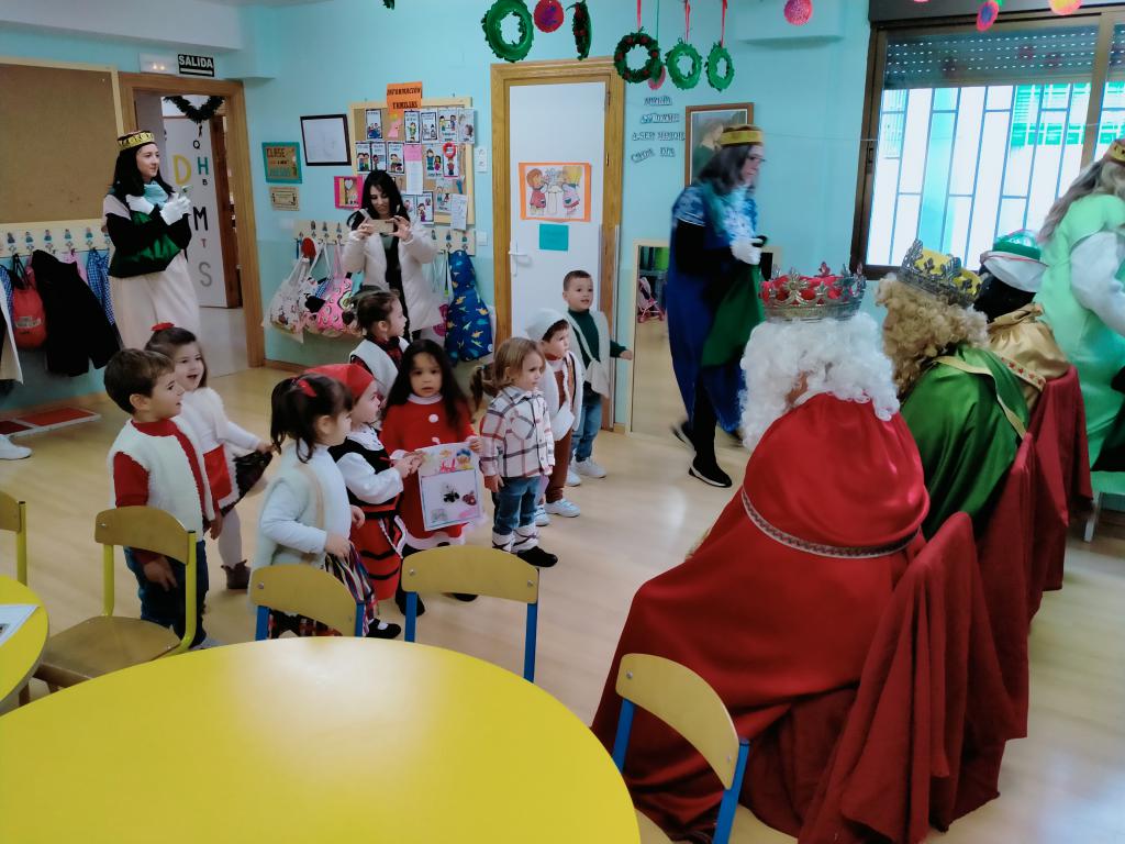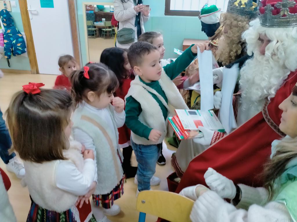 En su largo recorrido siguiendo la estrella de la Navidad hasta Belén, Melchor, Gaspar y Baltasar han hecho hoy una parada en nuestra escuela y niños y niñas han aprovechado para entregarles las cartas que han elaborado con cariño y esmero. Llenos de generosidad han dejado algunos regalos, han prometido leerlas todas y pasar por los hogares de todos los niños y niñas.